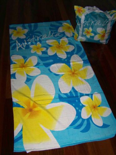 FRANGIPANI AUSTRALIA SPECIAL TOWEL & BAG AQUA BLUE NEW